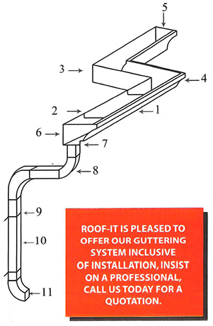 The purpose of guttering is to collect rainwater from the roof an direct it away from the building’s foundation by means of down pipes and underground drainage lines (where available). Guttering can also assist in reducing the rapid build-up of moss and fungus from around your home or building. Our system is esthetically pleasing and will add additional value to your property.