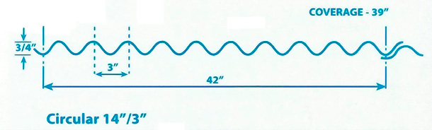 The 42” wide corrugated sheets allows for fewer sheets to be used. Sheets can be rolled to lengths that suit your specific requirements, however not greater than 50’-0” long as transport and handling can be strenuous. We recommend that #12 x2” self-drilling fasteners of cadmium coated stainless steel and washers of high neoprene to be used upon installation.