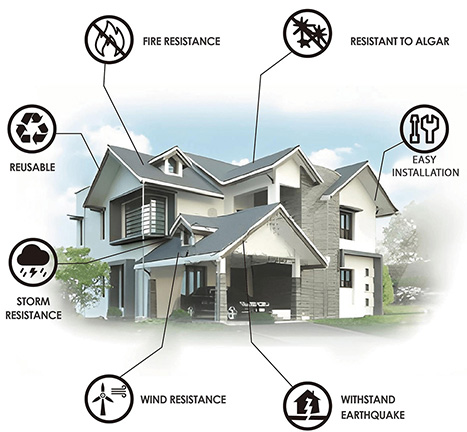 Offering a traditional look much like that of clay tiles but avoiding all the problems associated with clay. They are available in subtle and natural colors to add the most natural look and feel to your house. This profile is easy to install, weather proof, doesn't degenerate under UV light, lightweight, and offers protection under extreme weather conditions.